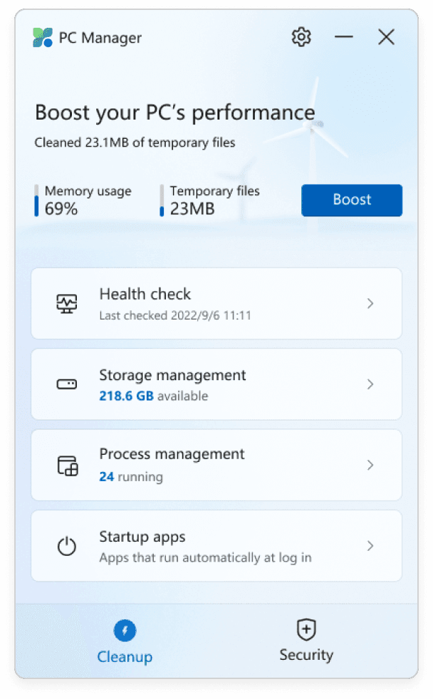 האפליקציה Microsoft PC Manager, הסבר